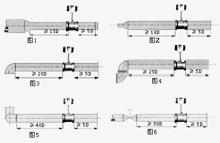 為了確保儀表正常、準確運行,傳感器安裝點的上下游須***有一定的直管道,以調(diào)整流場,如圖所示。