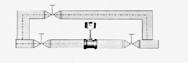 4、如需斷流檢查與清洗傳感器,應(yīng)設(shè)置旁通管道,如下圖所示。
